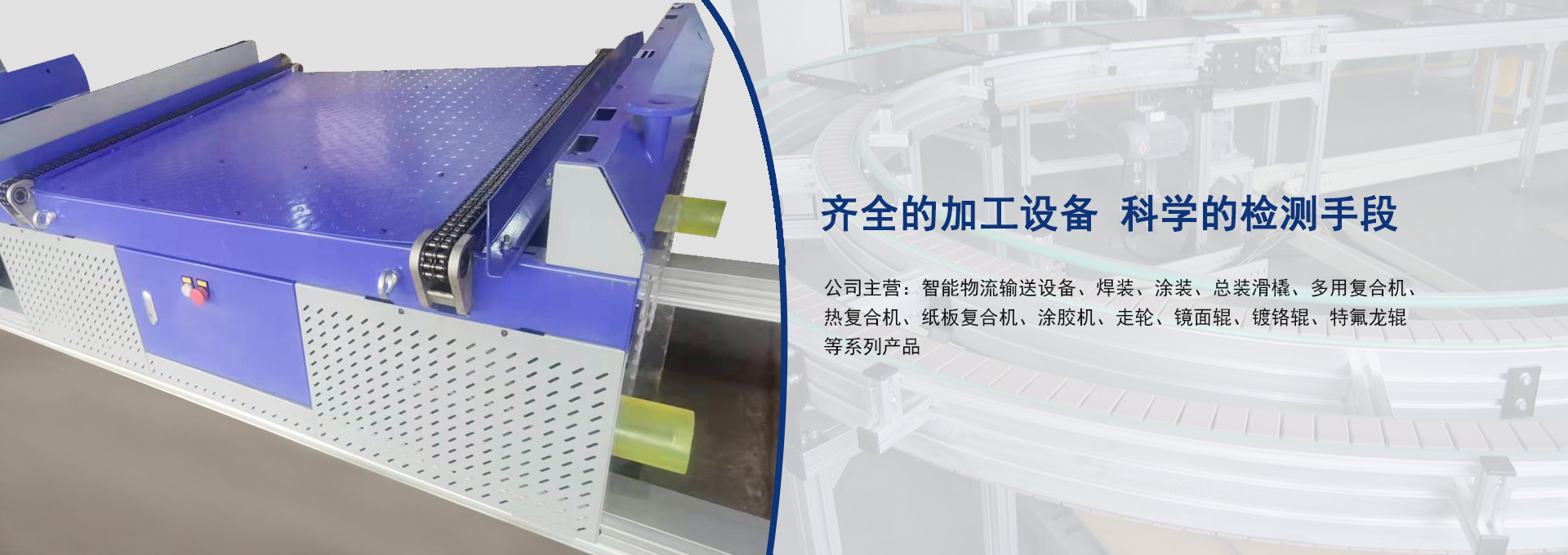 公司主營(yíng):智能物流輸送設(shè)備、焊裝、涂裝、總裝滑橇、多用復(fù)合機(jī)、熱復(fù)合機(jī)、紙板復(fù)合機(jī)、涂膠機(jī)、走輪、鏡面輥、鍍鉻輥、特氟龍輥等系列產(chǎn)品...